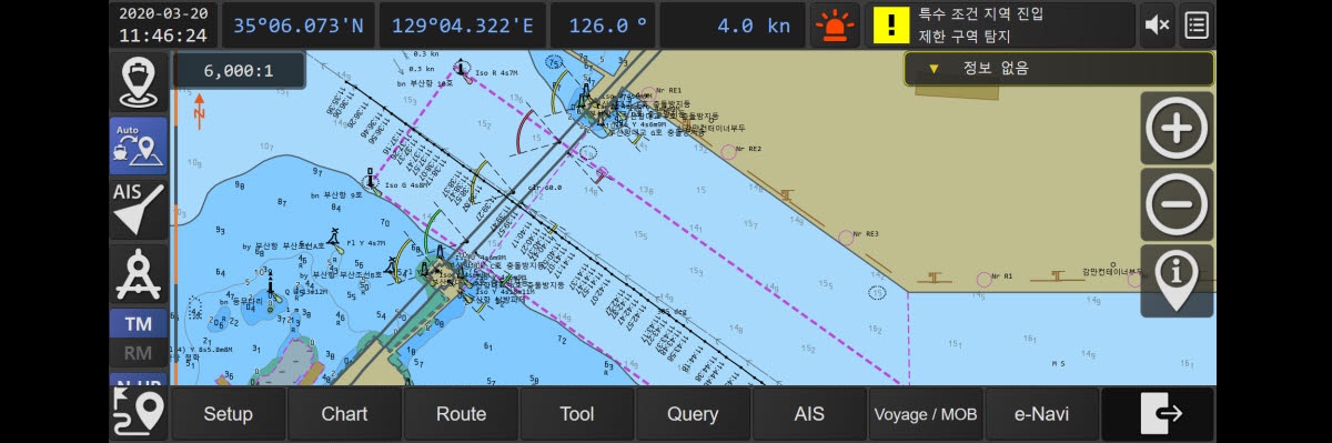 육지의 목표를 시계 내로 유지하고 항해할 수 있으며, 축척은 1/250,000 보다 소축척이다.